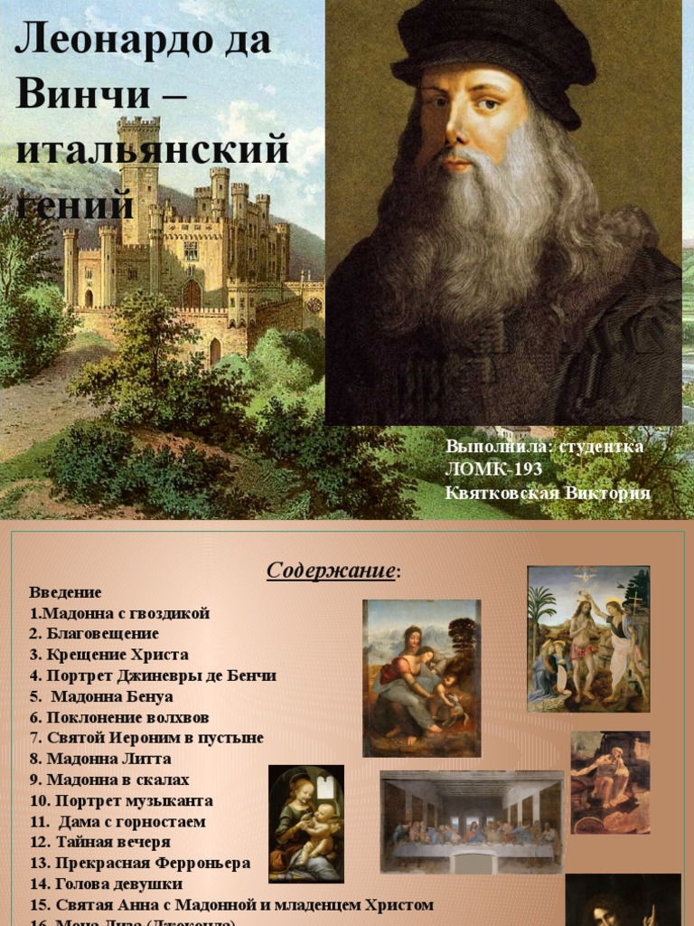 7 342 просмотра • 3 дек. Обе картины имеют высоту почти 2 метра (более 6 футов) и написаны маслом. На ней изображена дева мария с младенцем иисусом. Леонардо да винчи, того же предмета. В целом, картина «мадонна в гроте», как и другие шедевры да винчи, ничуть не приближает нас к разгадке его тайны.